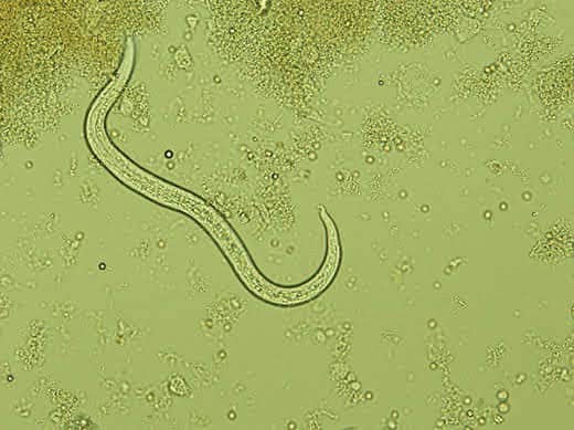 When a cat ingests the larval or egg stage of a worm, the larva develops in the intestine, migrates out of the intestines through the bloodstream and travels to the lungs, where it develops into an adult and lays more eggs. The eggs then hatch into larvae which are coughed up, swallowed and passed out in the feces where they are eaten by snails and slugs, and the cycle starts all over again.