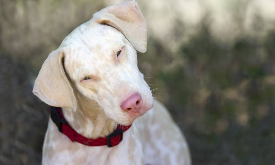 Albinism causes a complete lack of pigmentation, including of the skin, hair, and eyes as well as the blood vessels, resulting in a pinkish tinge. In fact, one of the tell-tale differences between a true albino dog and a dog with white fur is that the albino has pink eyes. A white-coated dog carries the genetic make-up for white pigmentation, or may be a partial albino, whereas a true albino dog has no pigmentation.