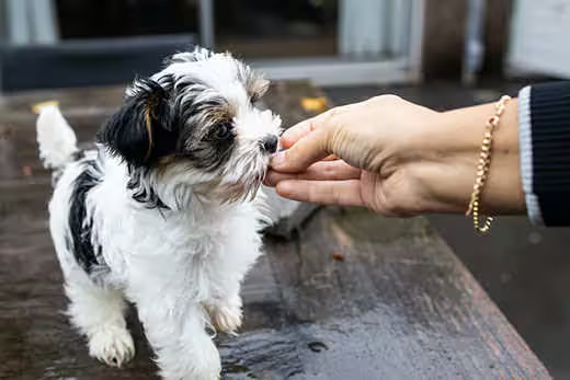Dogs are highly motivated by praise and rewards. Create positive associations for your puppy when he follows your commands by verbally encouraging him or sharing a bite of kibble or healthy dog treats. Rewards not only make training more fun for your pet, but also give him something to work for. Just make sure that treats don't make up more than ten percent of his caloric intake each day to ensure he doesn't put on any unnecessary weight.