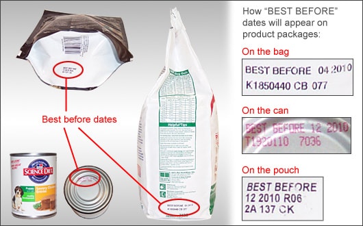 How can I tell if an unopened can or bag of cat or dog food is still good? For dry cat and dog food
