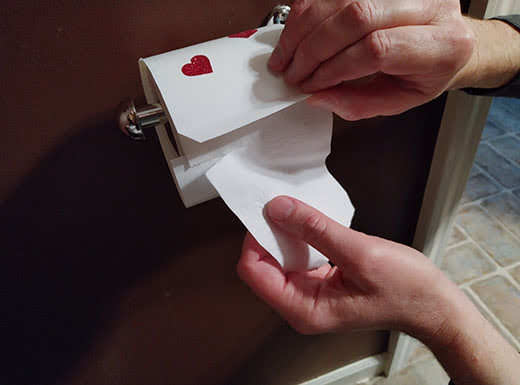 Be sure to use a large container because a small one won't leave enough room for the toilet paper to unroll.